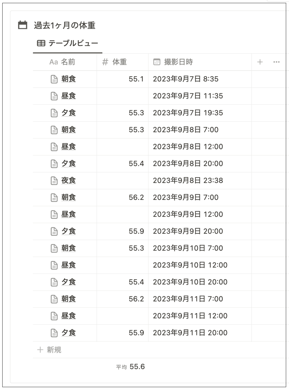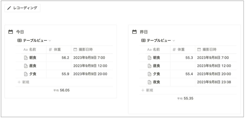 食べたもの、体重をこのNotionテンプレートにメモ